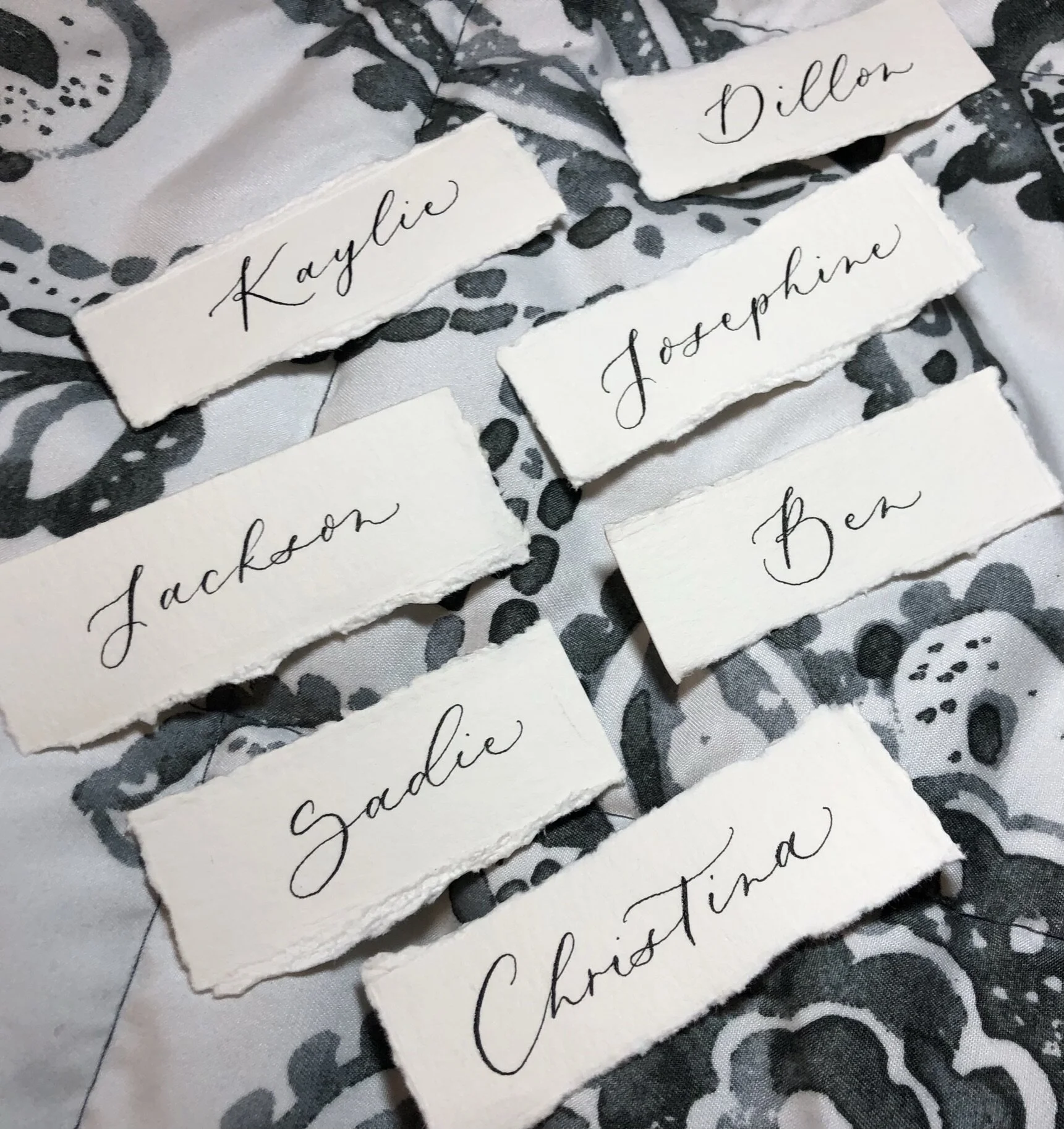 Individualized name tags add a special charm to events and double as cherished keepsakes for your guests to take home with them. Perfect for weddings, parties, corporate dinners, and any occasion where attention to detail counts, hand-lettered place cards transform simple seating arrangements into beautiful, memorable moments.