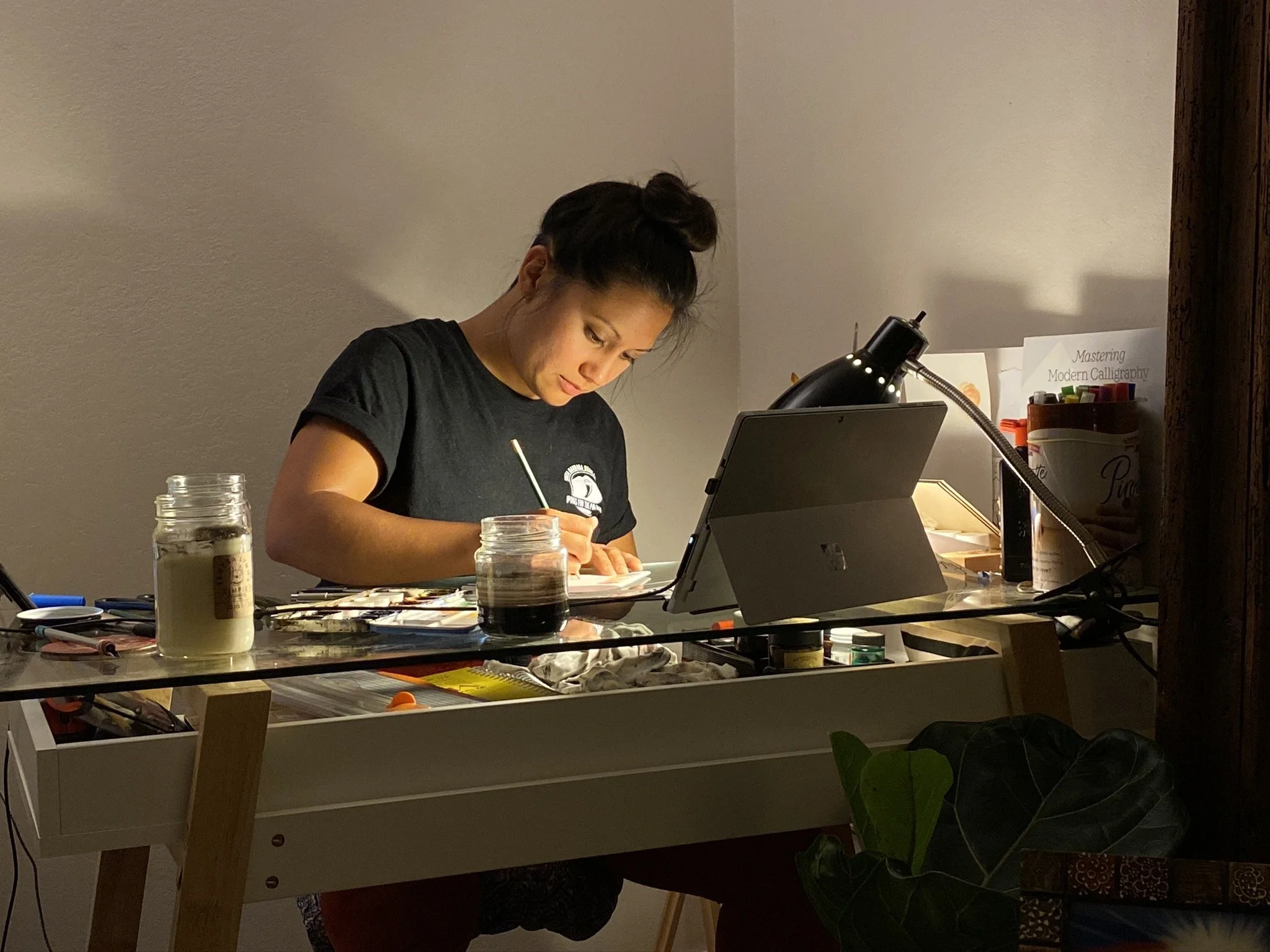 After over a decade of feeding my creative hunger by painting with oils, acrylics, and watercolor, I found calligraphy in 2019. I quickly became consumed, practicing on a daily basis out of joy, and gaining skills and experience along the way.