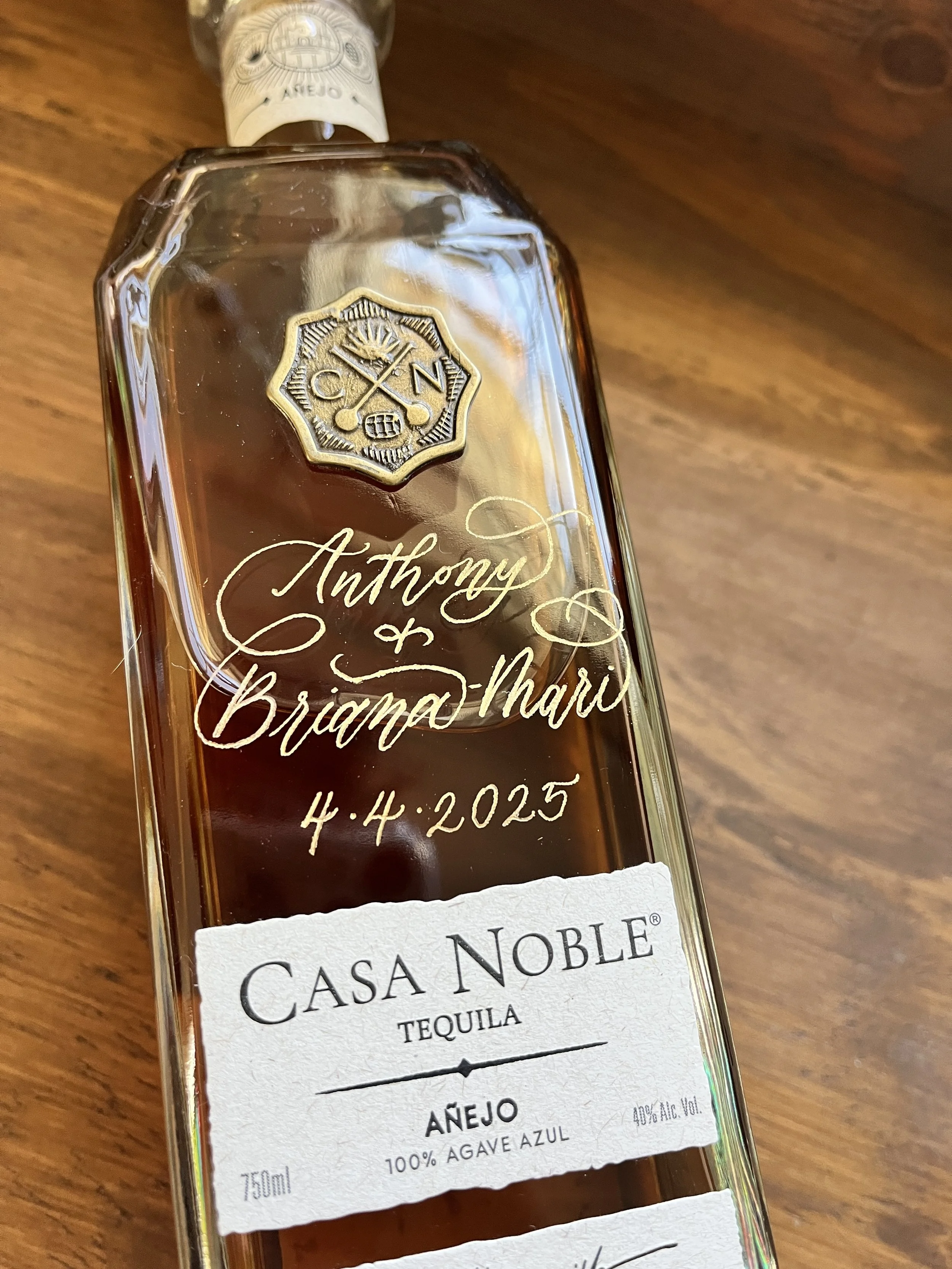 Great for glassware, wine and liquor bottles, perfume bottles, lipstick, mirrored surfaces, candles, metal water bottles, other metal surfaces, some plastics, and stone. Engraving adds a personal, permanent touch for your guests to take home with them.